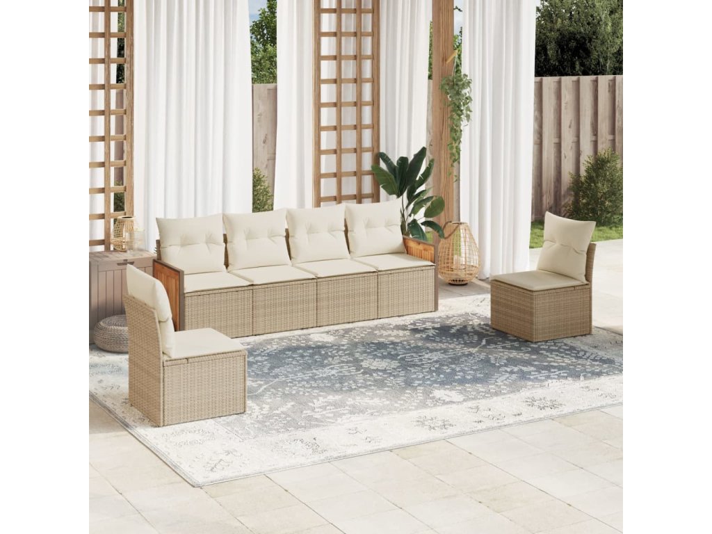 vidaXL 6-dielna záhradná súprava pohoviek s vankúšmi béžová polyratan