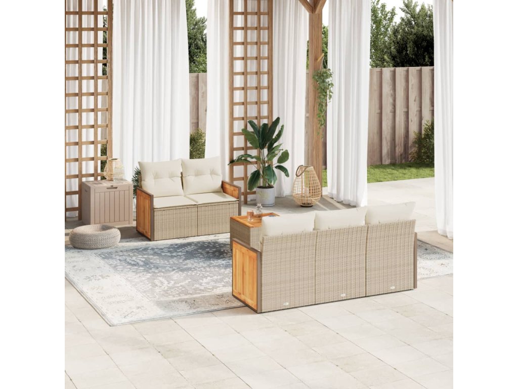 vidaXL 6-dielna záhradná súprava pohoviek s vankúšmi béžová polyratan