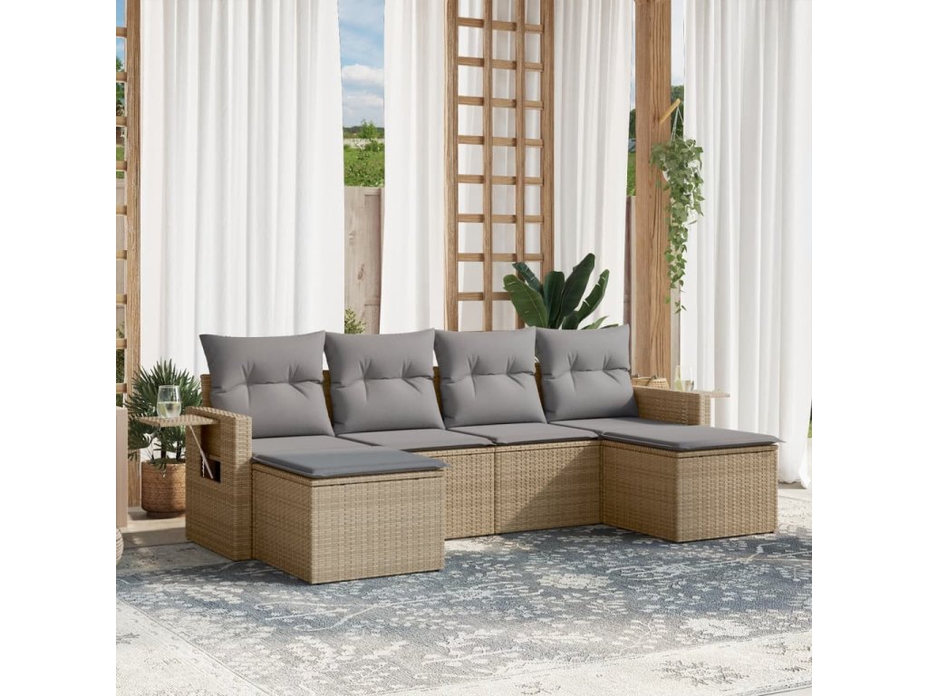 vidaXL 6-dielna záhradná súprava pohoviek s vankúšmi béžová polyratan