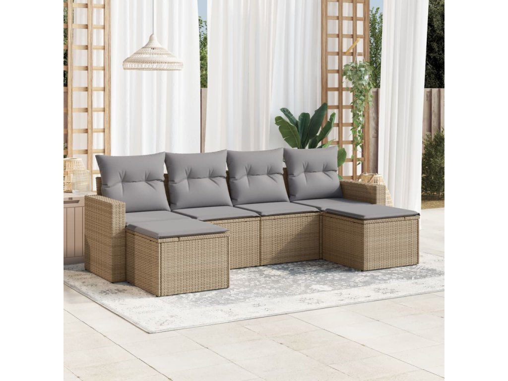 vidaXL 6-dielna záhradná súprava pohoviek s vankúšmi béžová polyratan