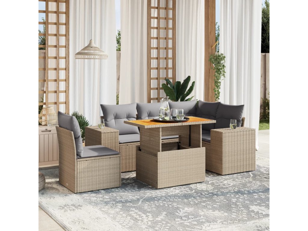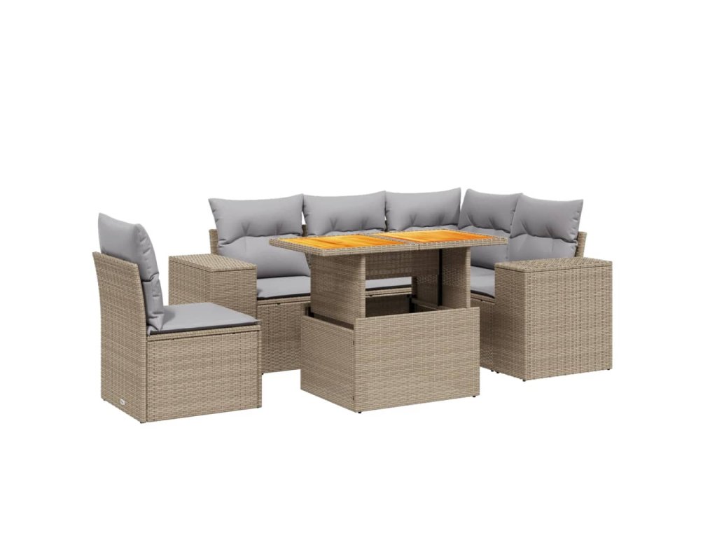 vidaXL 6-dielna záhradná súprava pohoviek s vankúšmi béžová polyratan