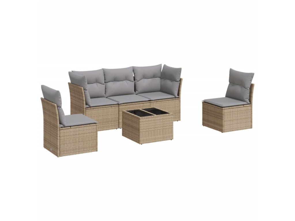 vidaXL 6-dielna záhradná súprava pohoviek s vankúšmi béžová polyratan