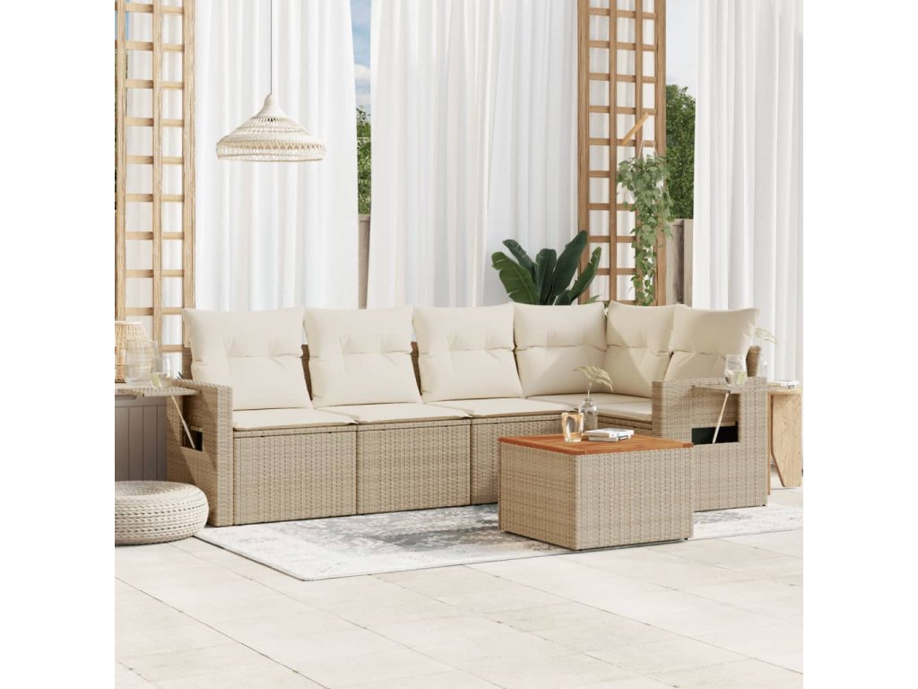 vidaXL 6-dielna záhradná súprava pohoviek s vankúšmi béžová polyratan