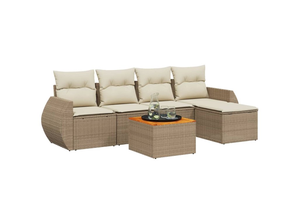 vidaXL 6-dielna záhradná súprava pohoviek s vankúšmi béžová polyratan
