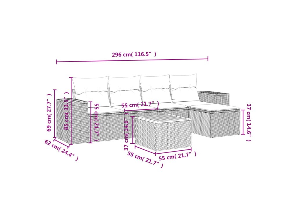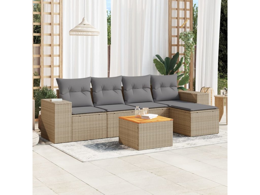 vidaXL 6-dielna záhradná súprava pohoviek s vankúšmi béžová polyratan