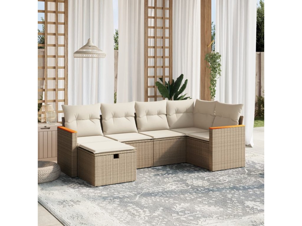 vidaXL 6-dielna záhradná súprava pohoviek s vankúšmi béžová polyratan