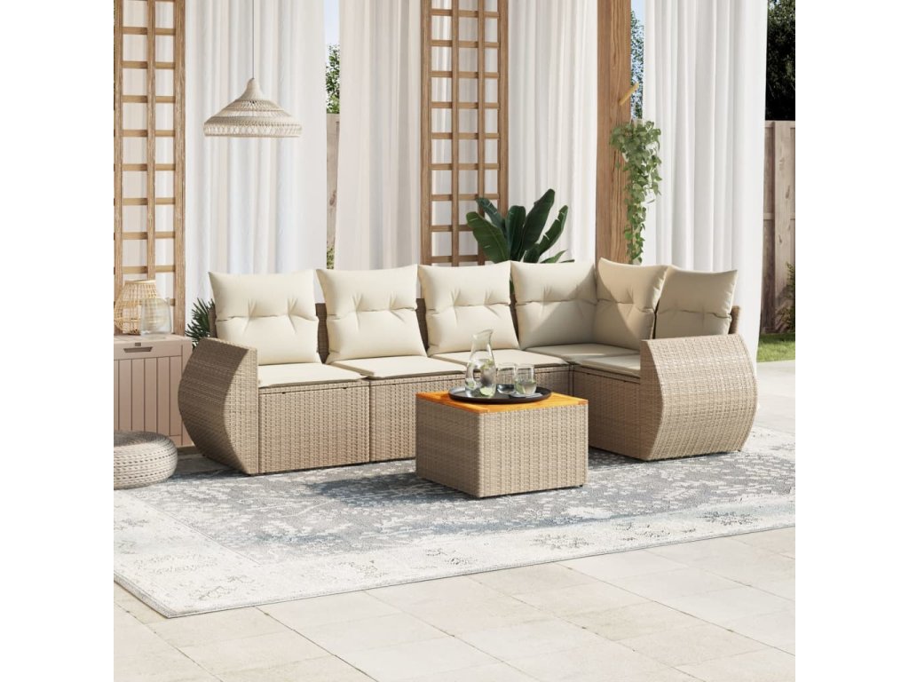 vidaXL 6-dielna záhradná súprava pohoviek s vankúšmi béžová polyratan
