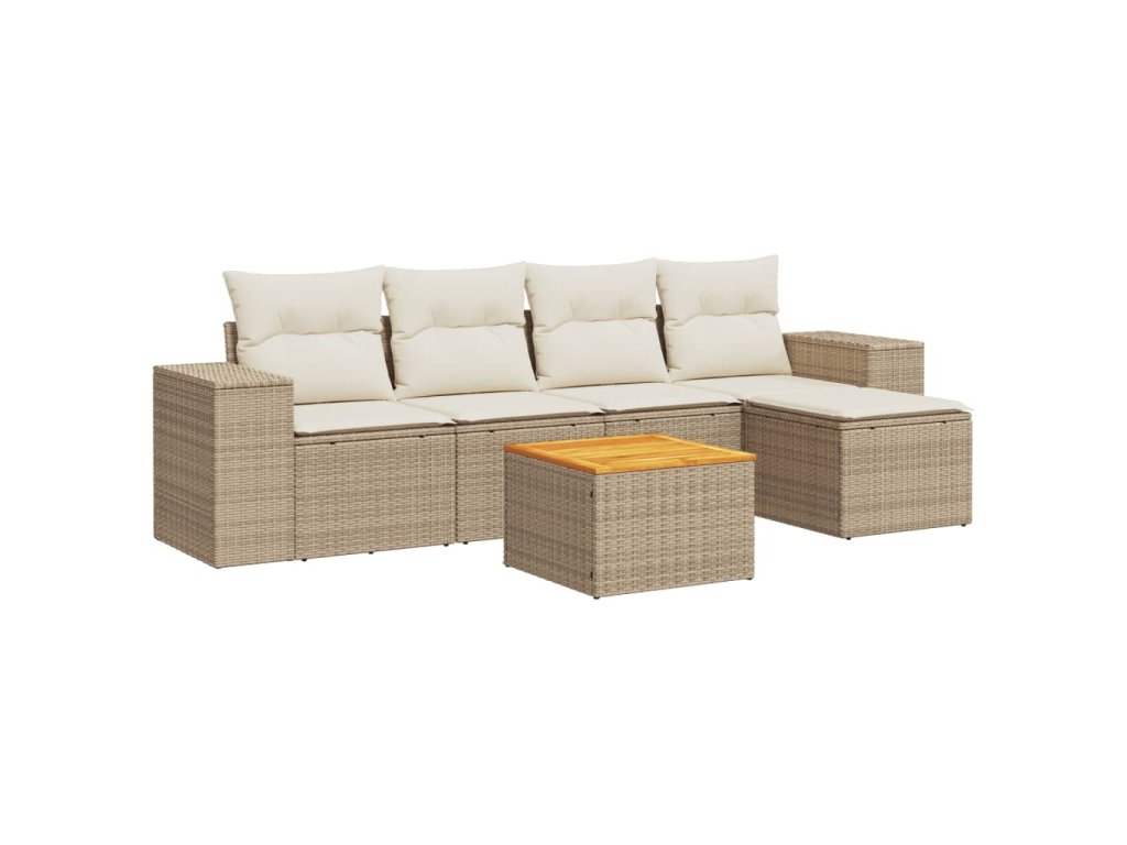 vidaXL 6-dielna záhradná súprava pohoviek s vankúšmi béžová polyratan