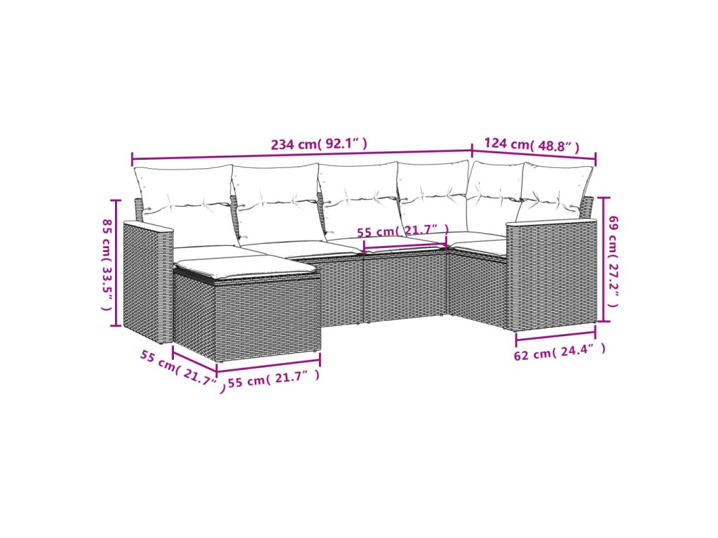 vidaXL 6-dielna záhradná súprava pohoviek s vankúšmi béžová polyratan
