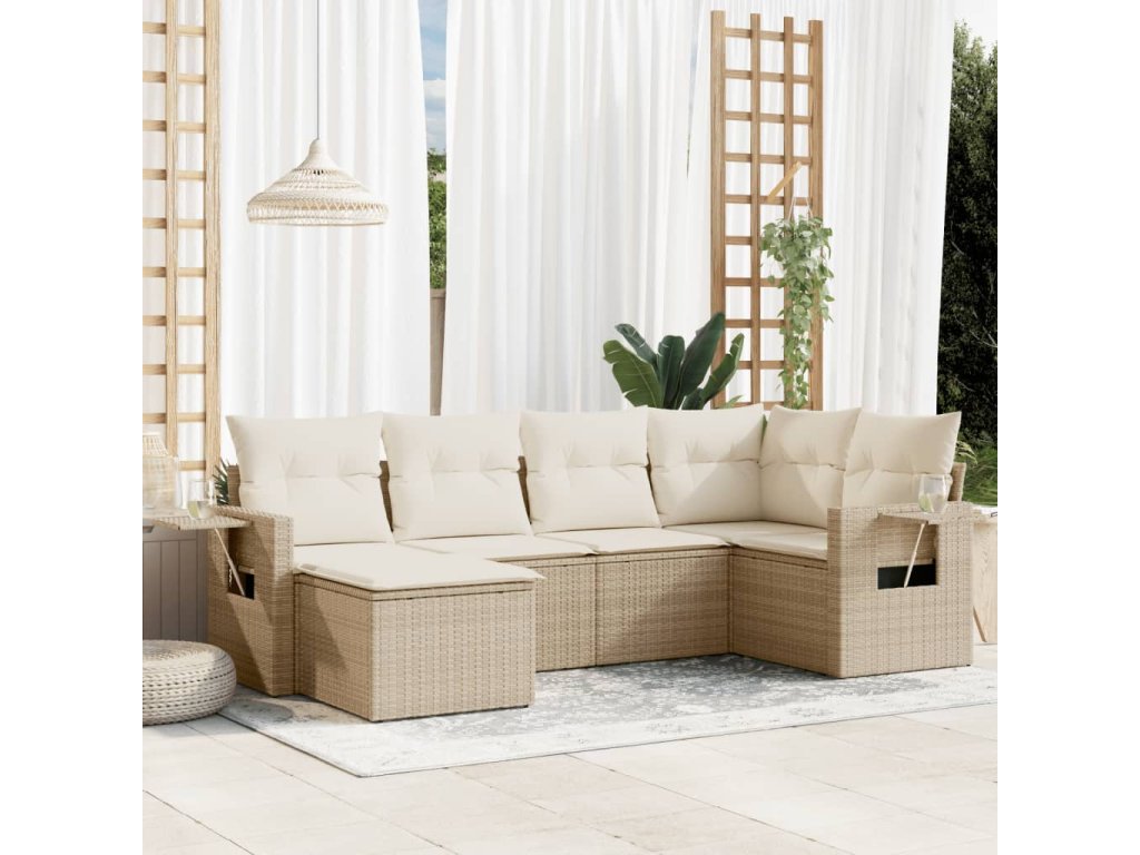 vidaXL 6-dielna záhradná súprava pohoviek s vankúšmi béžová polyratan