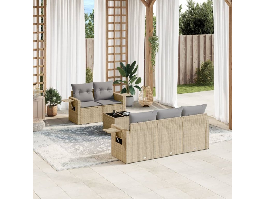 vidaXL 6-dielna záhradná súprava pohoviek s vankúšmi béžová polyratan