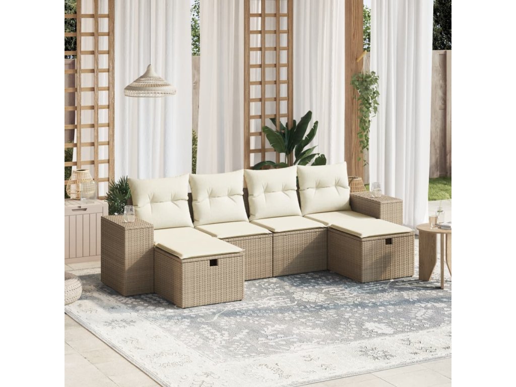 vidaXL 6-dielna záhradná súprava pohoviek s vankúšmi béžová polyratan