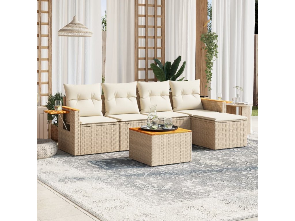 vidaXL 6-dielna záhradná súprava pohoviek s vankúšmi béžová polyratan
