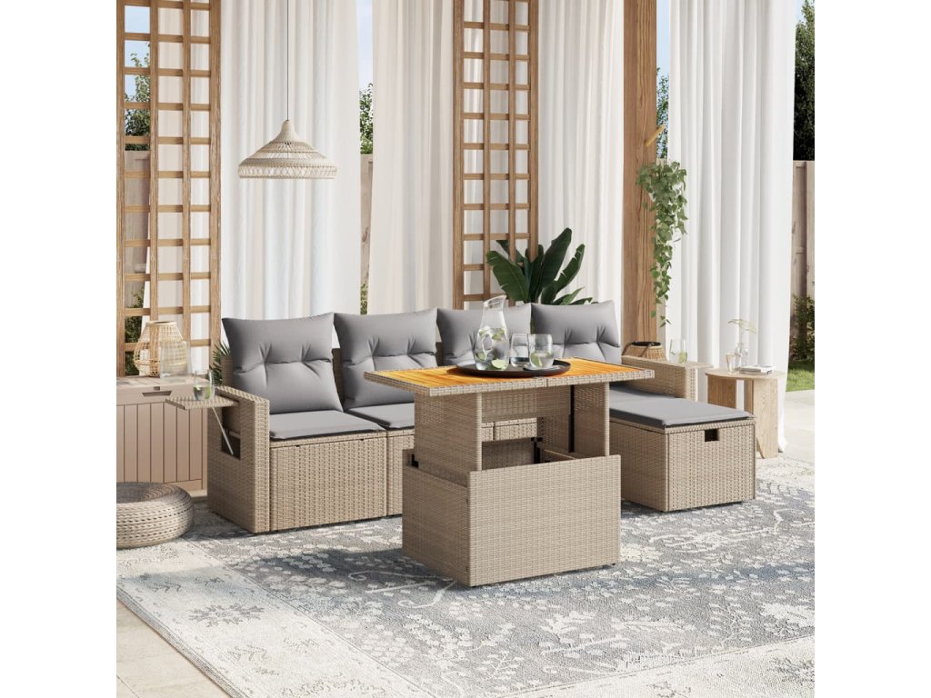 vidaXL 6-dielna záhradná súprava pohoviek s vankúšmi béžová polyratan