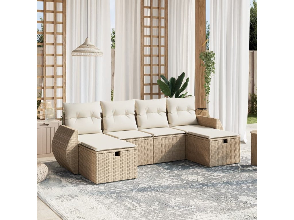 vidaXL 6-dielna záhradná súprava pohoviek s vankúšmi béžová polyratan