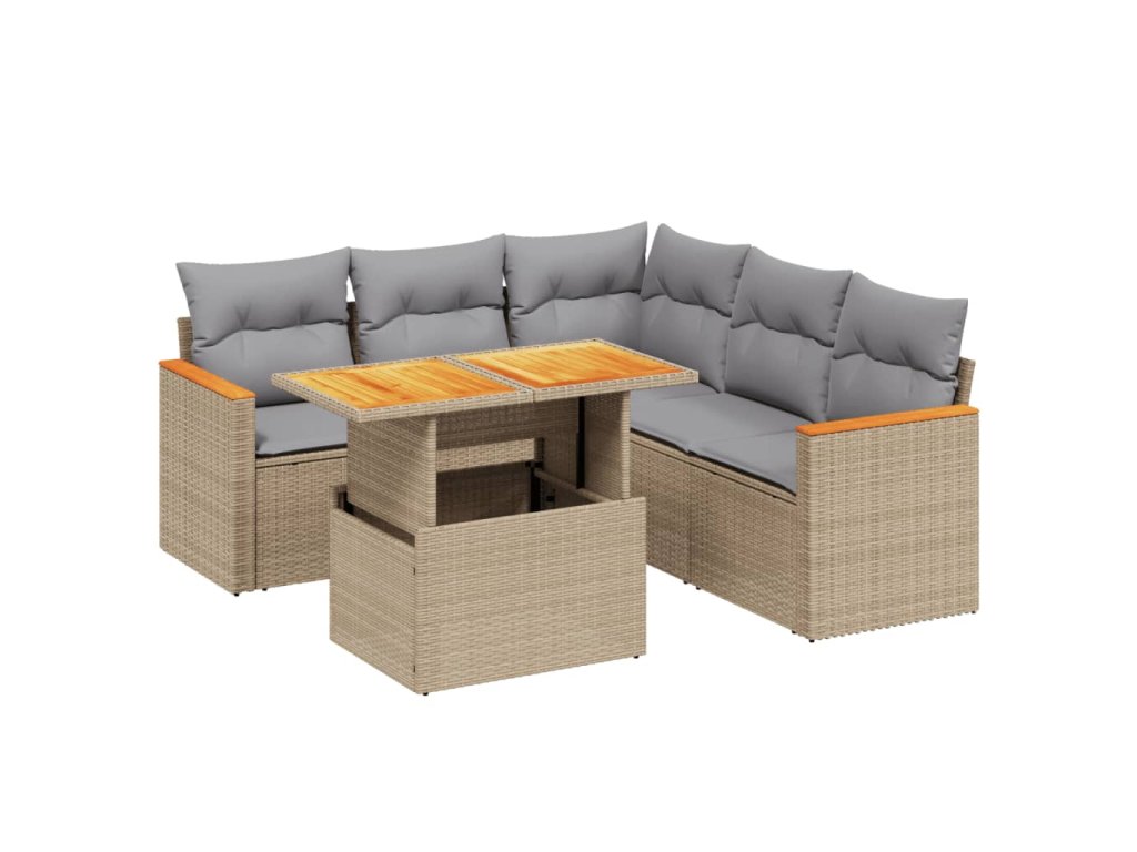 vidaXL 6-dielna záhradná súprava pohoviek s vankúšmi béžová polyratan