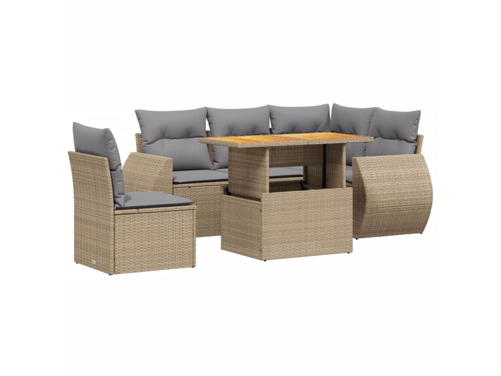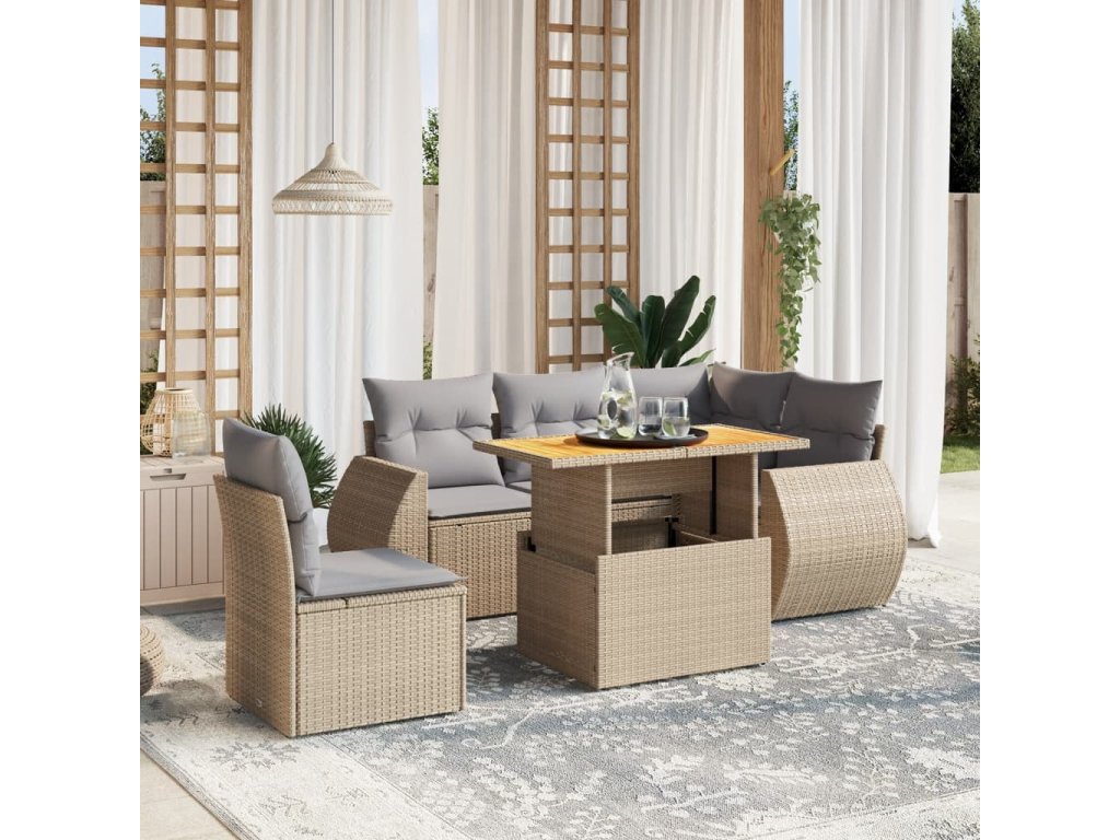 vidaXL 6-dielna záhradná súprava pohoviek s vankúšmi béžová polyratan