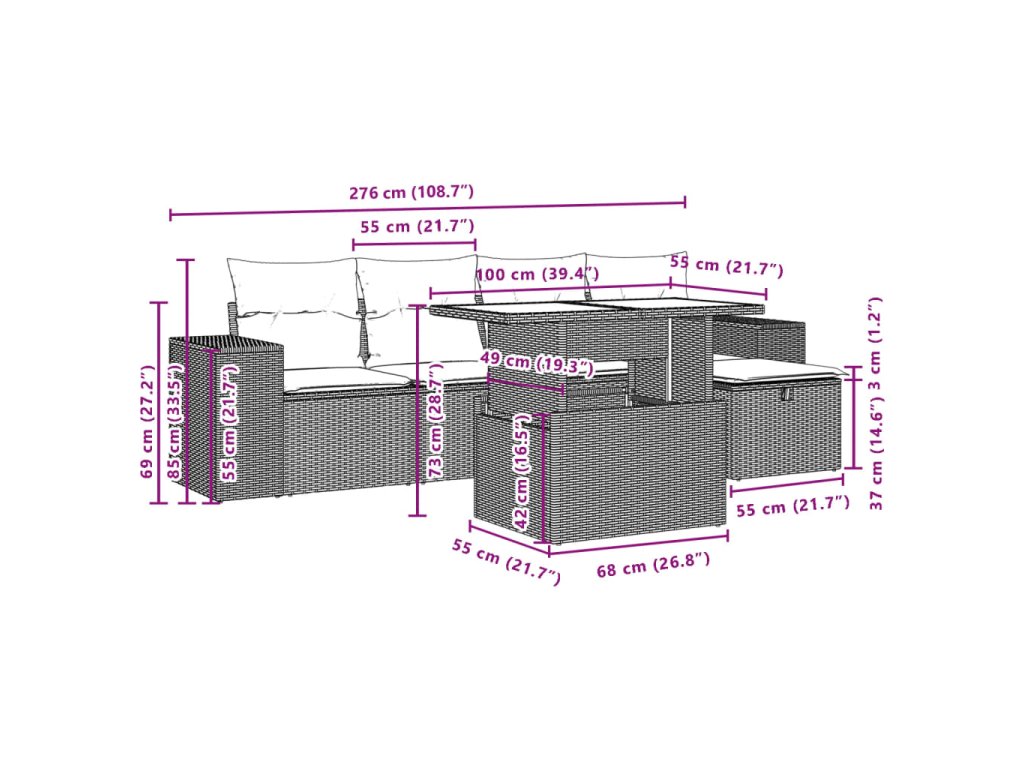- Modulárny dizajn: Táto súprava vonkajšieho nábytku má modulárny dizajn, vďaka čomu je úplne flexibilná a ľahko sa premiestňuje, takže si svoj vonkajší nábytok budete môcť usporiadať podľa potreby.