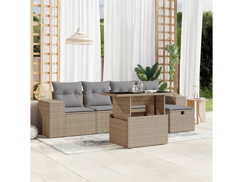 vidaXL 6-dielna záhradná súprava pohoviek s vankúšmi béžová polyratan