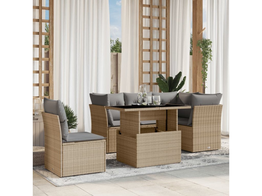 vidaXL 6-dielna záhradná súprava pohoviek s vankúšmi béžová polyratan