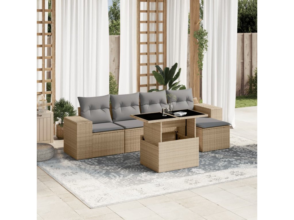 vidaXL 6-dielna záhradná súprava pohoviek s vankúšmi béžová polyratan