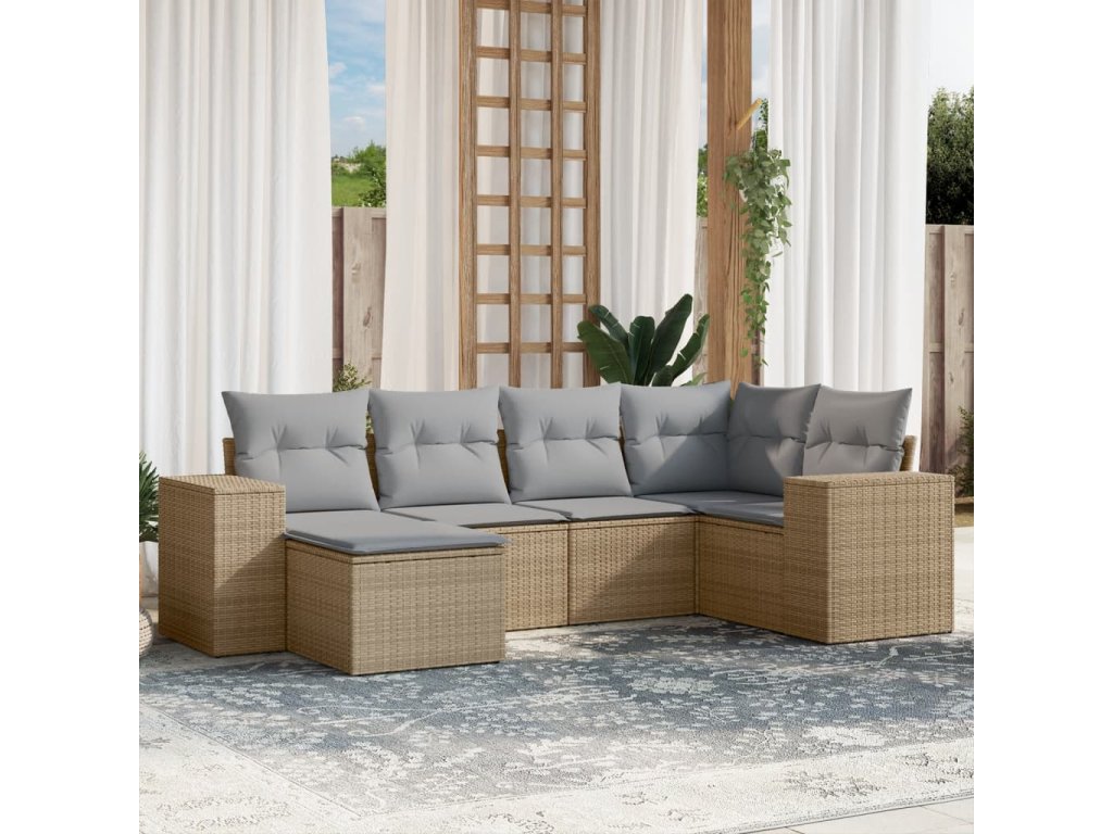 vidaXL 6-dielna záhradná súprava pohoviek s vankúšmi béžová polyratan