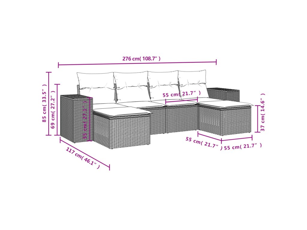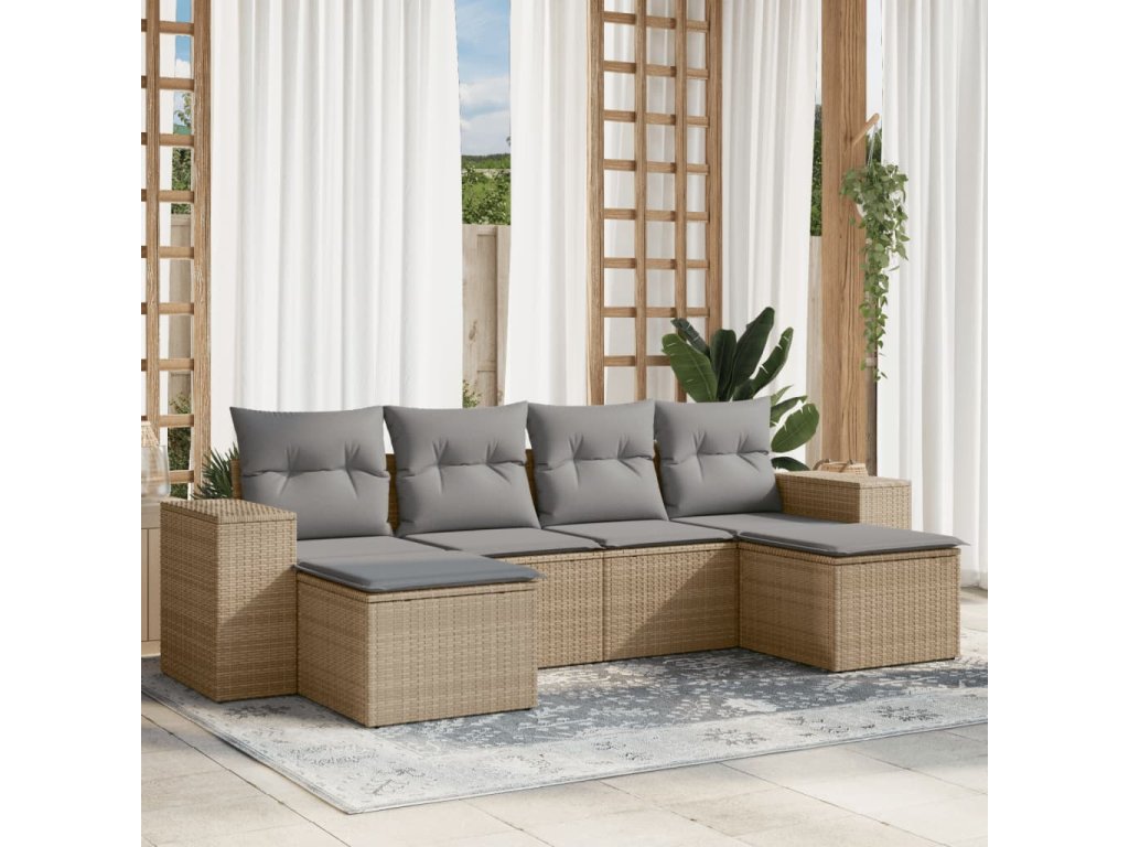 vidaXL 6-dielna záhradná súprava pohoviek s vankúšmi béžová polyratan