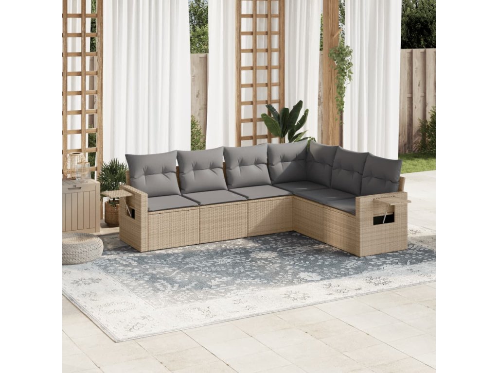 vidaXL 6-dielna záhradná súprava pohoviek s vankúšmi béžová polyratan