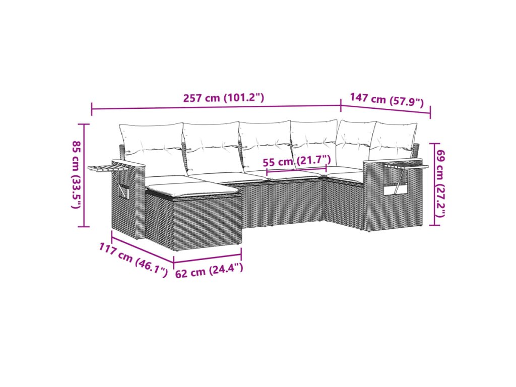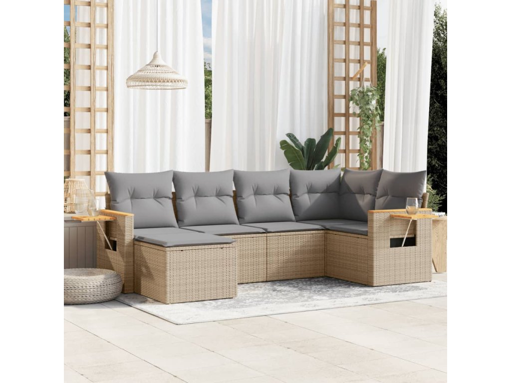 vidaXL 6-dielna záhradná súprava pohoviek s vankúšmi béžová polyratan