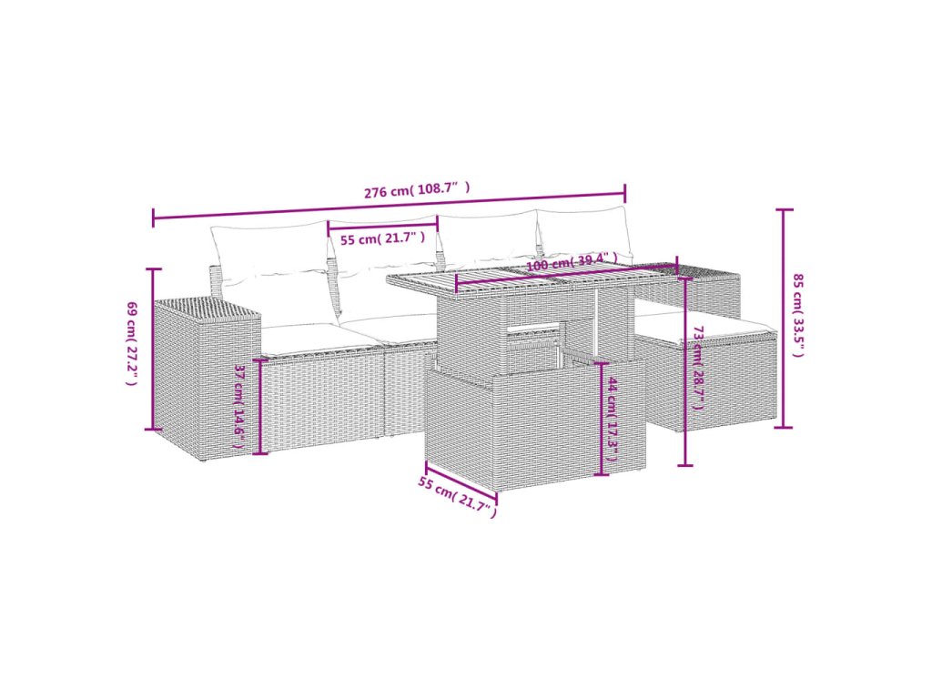 - Modulárny dizajn: Táto súprava vonkajšieho nábytku má modulárny dizajn, vďaka čomu je úplne flexibilná a ľahko sa premiestňuje, takže si môžete vytvoriť prispôsobené usporiadanie vonkajšieho nábytku.
