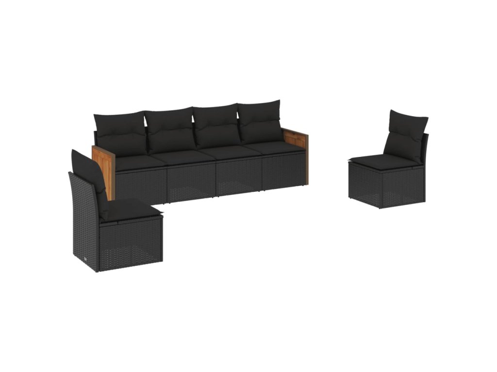 vidaXL 6-dielna záhradná súprava pohoviek s vankúšmi čierna polyratan