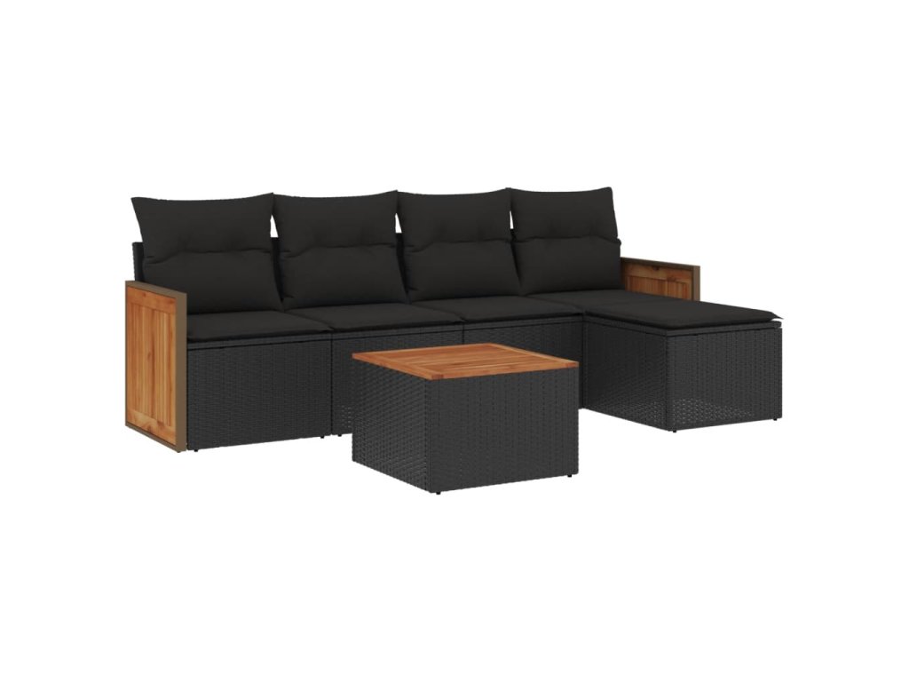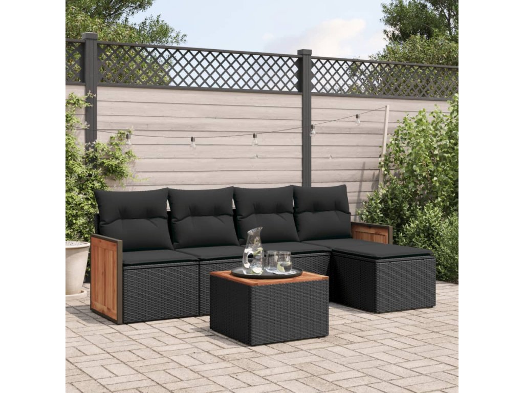 vidaXL 6-dielna záhradná súprava pohoviek s vankúšmi čierna polyratan
