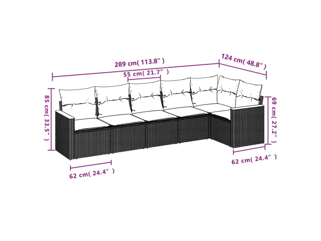 vidaXL 6-dielna záhradná súprava pohoviek s vankúšmi čierna polyratan