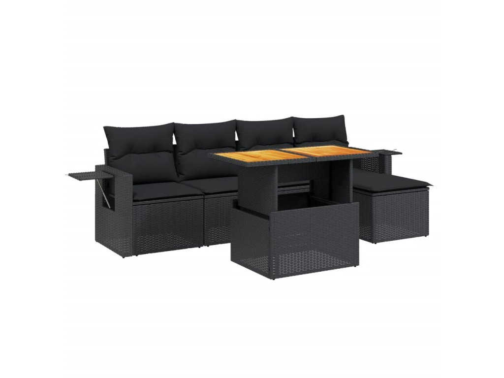 vidaXL 6-dielna záhradná súprava pohoviek s vankúšmi čierna polyratan