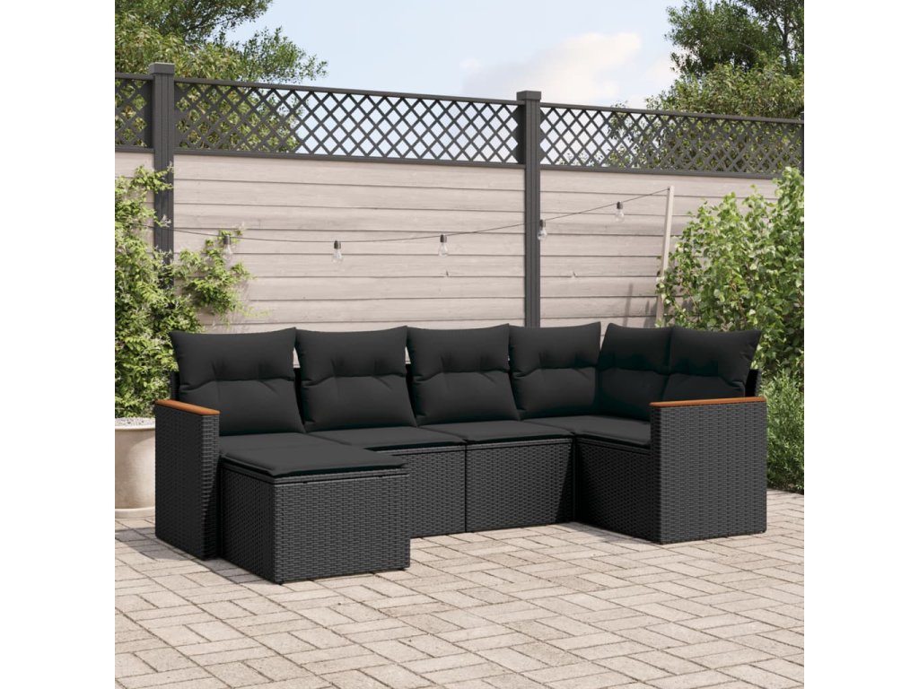 vidaXL 6-dielna záhradná súprava pohoviek s vankúšmi čierna polyratan