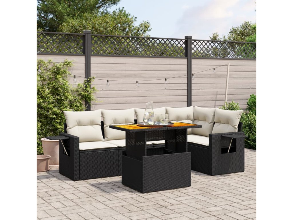 vidaXL 6-dielna záhradná súprava pohoviek s vankúšmi čierna polyratan