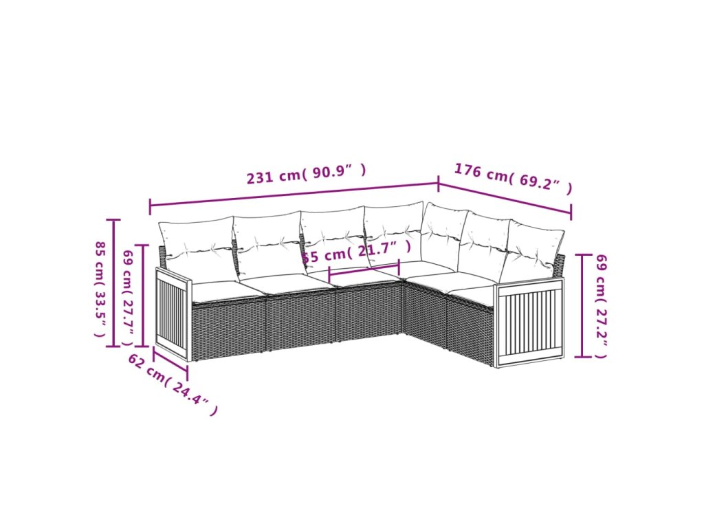 vidaXL 6-dielna záhradná súprava pohoviek s vankúšmi čierna polyratan
