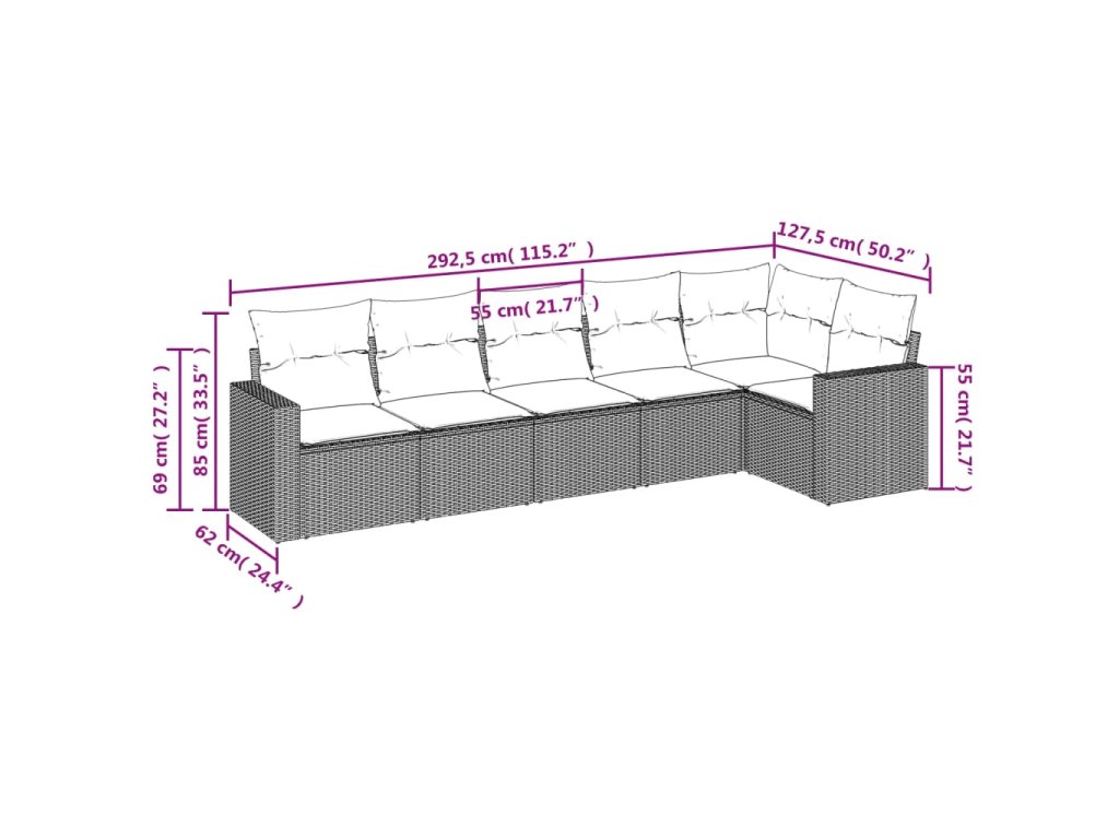 vidaXL 6-dielna záhradná súprava pohoviek s vankúšmi čierna polyratan