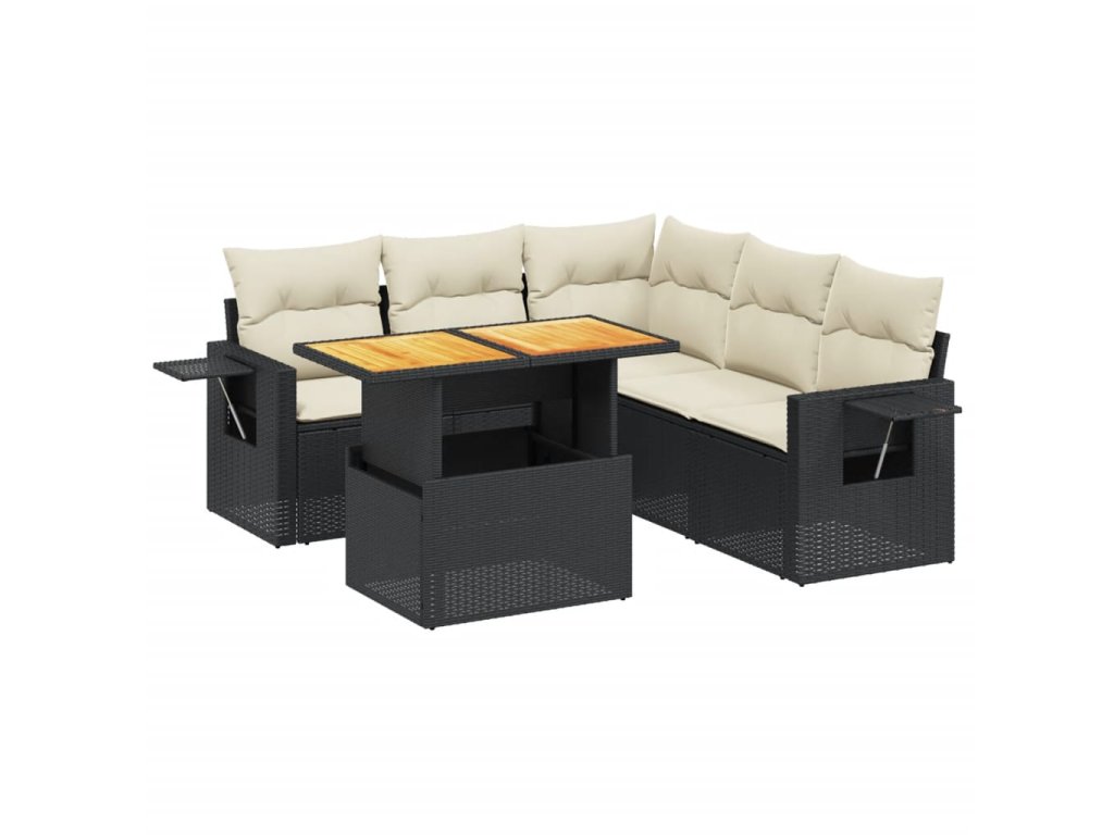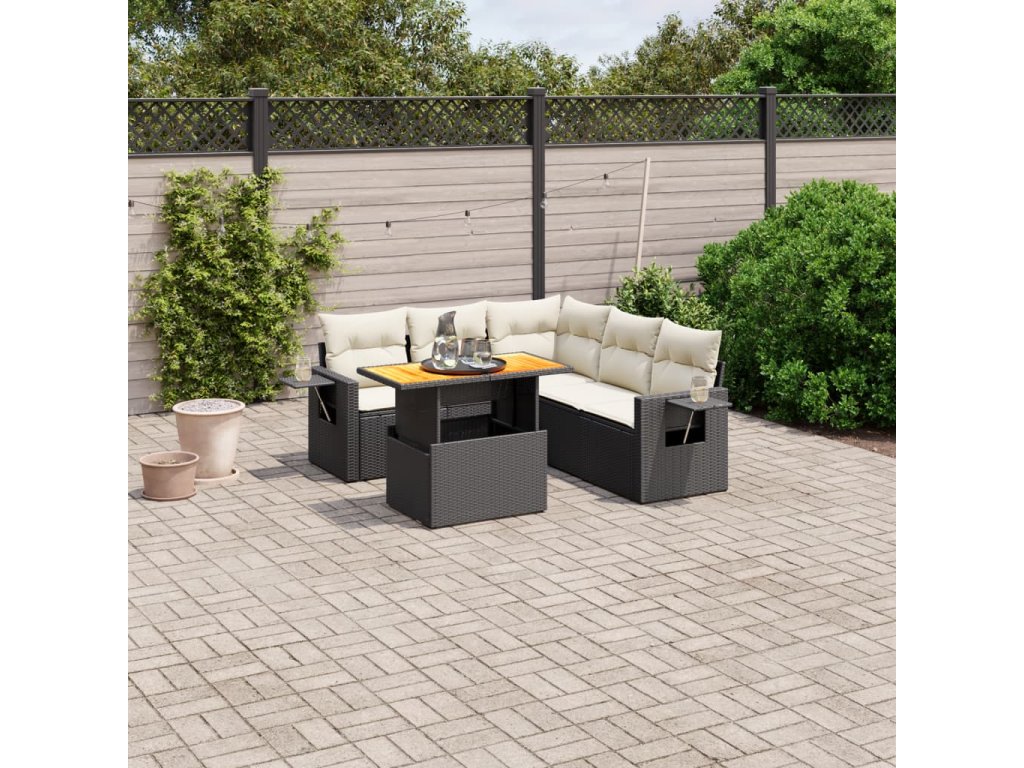 vidaXL 6-dielna záhradná súprava pohoviek s vankúšmi čierna polyratan