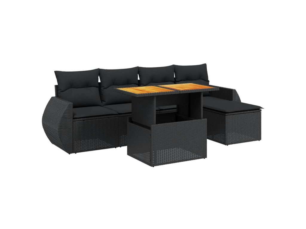 vidaXL 6-dielna záhradná súprava pohoviek s vankúšmi čierna polyratan