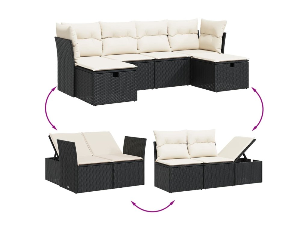 vidaXL 6-dielna záhradná súprava pohoviek s vankúšmi čierna polyratan
