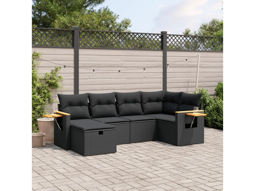 vidaXL 6-dielna záhradná súprava pohoviek s vankúšmi čierna polyratan