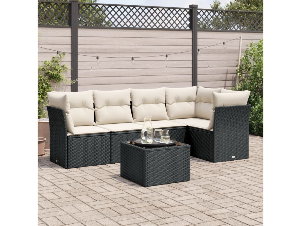 vidaXL 6-dielna záhradná súprava pohoviek s vankúšmi čierna polyratan