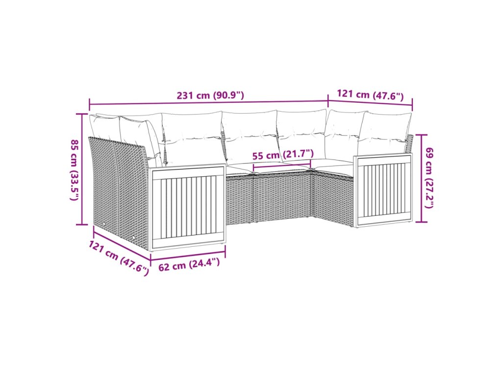 - Materiál: PE ratan, práškovaná oceľ, masívne akáciové drevo s olejovým náterom