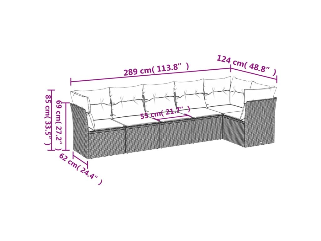 - Celkové rozmery pohovky: 289 x 124 x 69 cm (Š x H x V)