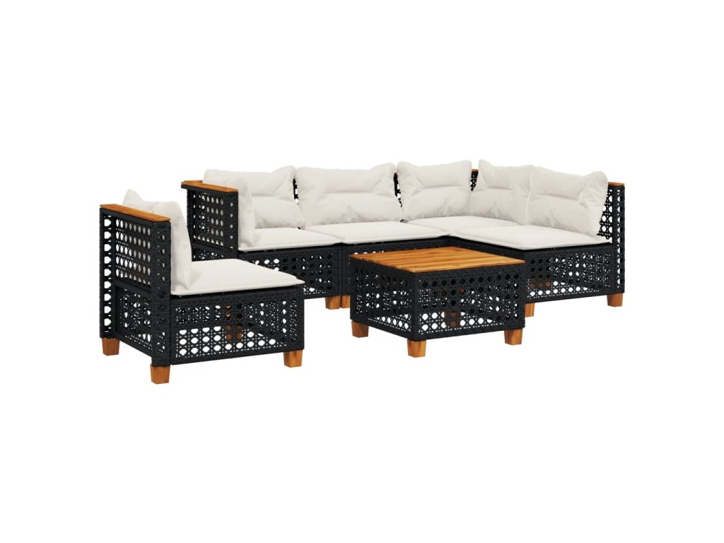 vidaXL 6-dielna záhradná súprava pohoviek s vankúšmi čierna polyratan