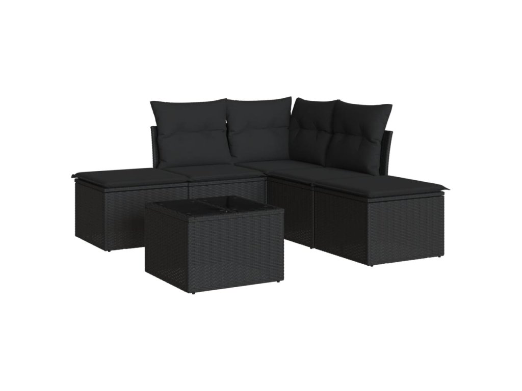 vidaXL 6-dielna záhradná súprava pohoviek s vankúšmi čierna polyratan