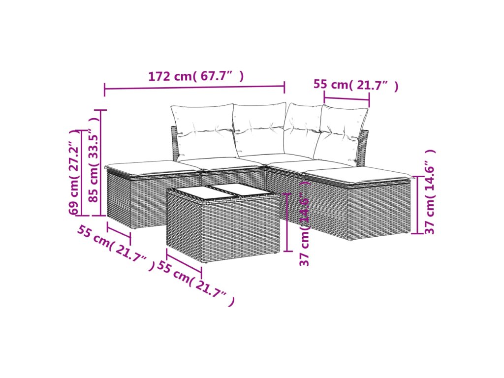 - Modulárny dizajn: Táto súprava vonkajšieho nábytku má modulárny dizajn, vďaka čomu je úplne flexibilná a ľahko sa premiestňuje, takže si môžete vytvoriť prispôsobené usporiadanie vonkajšieho nábytku.