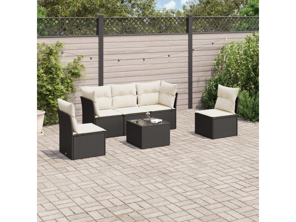 vidaXL 6-dielna záhradná súprava pohoviek s vankúšmi čierna polyratan