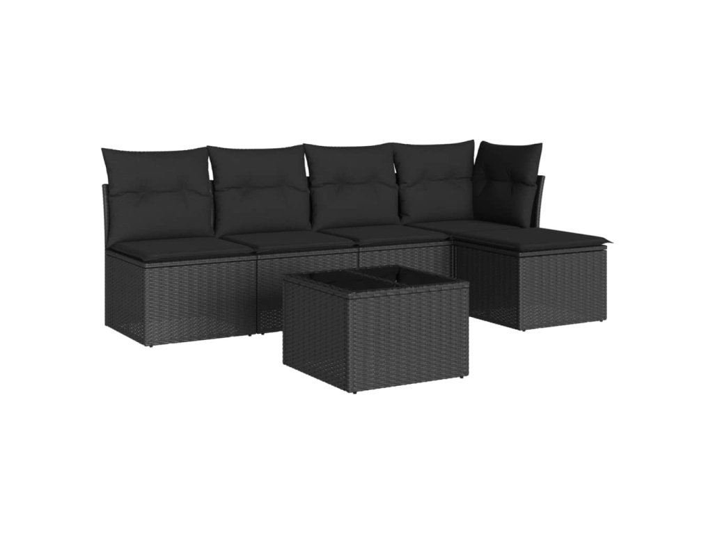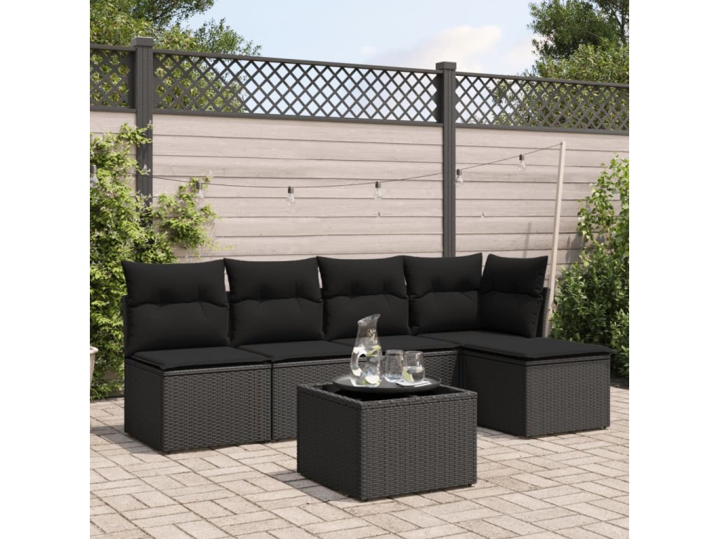 vidaXL 6-dielna záhradná súprava pohoviek s vankúšmi čierna polyratan